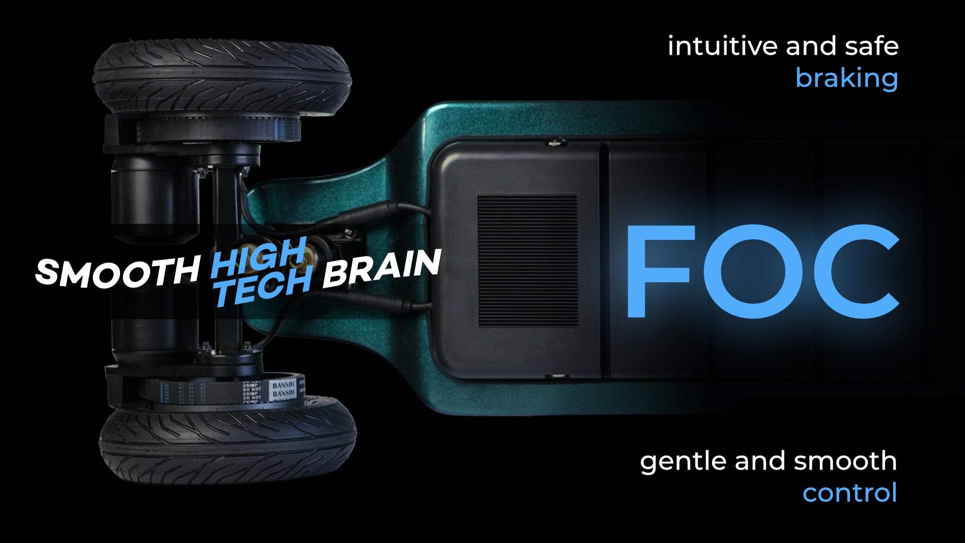 The control board utilizing the FOC algorithm provides smooth, stepless acceleration from low to high speeds.You don't have to worry about braking at high speeds - it is also incredibly smooth and predictable.The ESC also features regenerative braking, which recovers power back to the battery and gives maximum control over the speed.